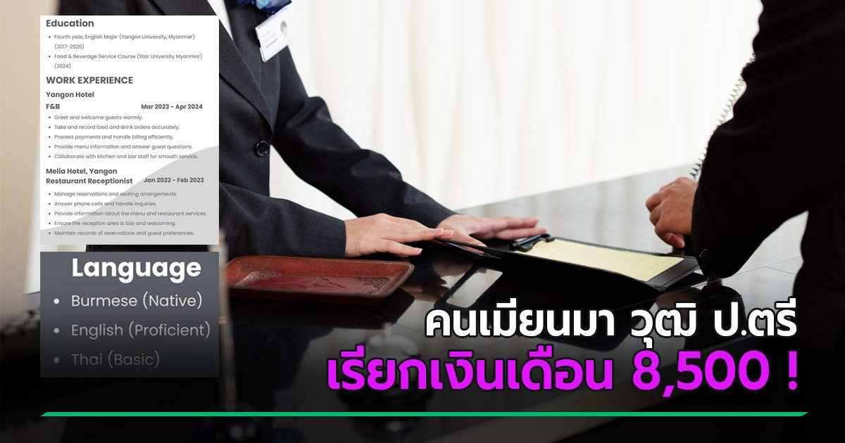 คนเมียนมาหางานทำในไทย วุฒิ ป.ตรี ขอเงินเดือนแค่ 8,500 พอเห็นโปรไฟล์ คนไทยจะเป็นลม !