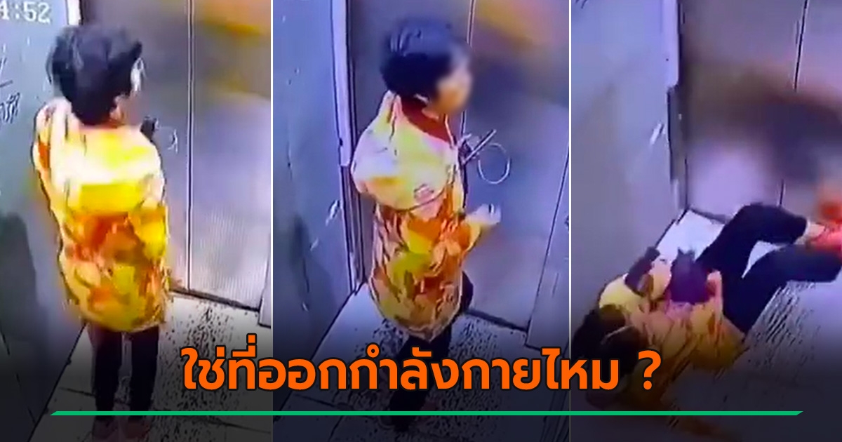 ป้าออกกำลังไม่ดูที่ วิ่งเหยาะ-โดดในลิฟต์ ไม่นานเกือบขิต ลิฟต์ร่วงจนล้มกระแทก