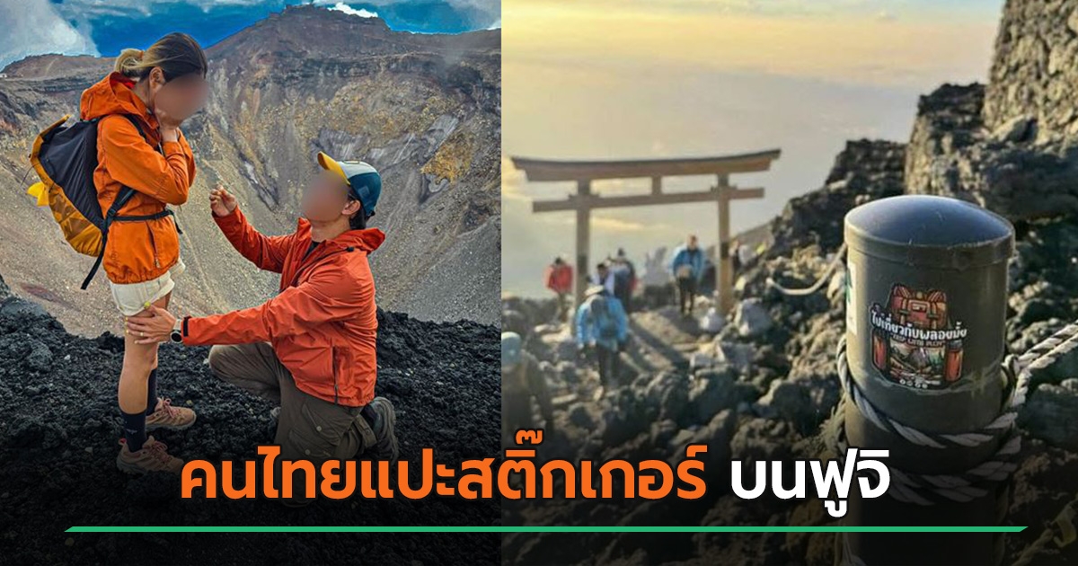 เพจท่องเที่ยวดัง ติดสติ๊กเกอร์บนเสา ภูเขาไฟฟูจิ เป็นสักขีพยานขอแต่งงาน ชะตากรรมจบไม่สวย