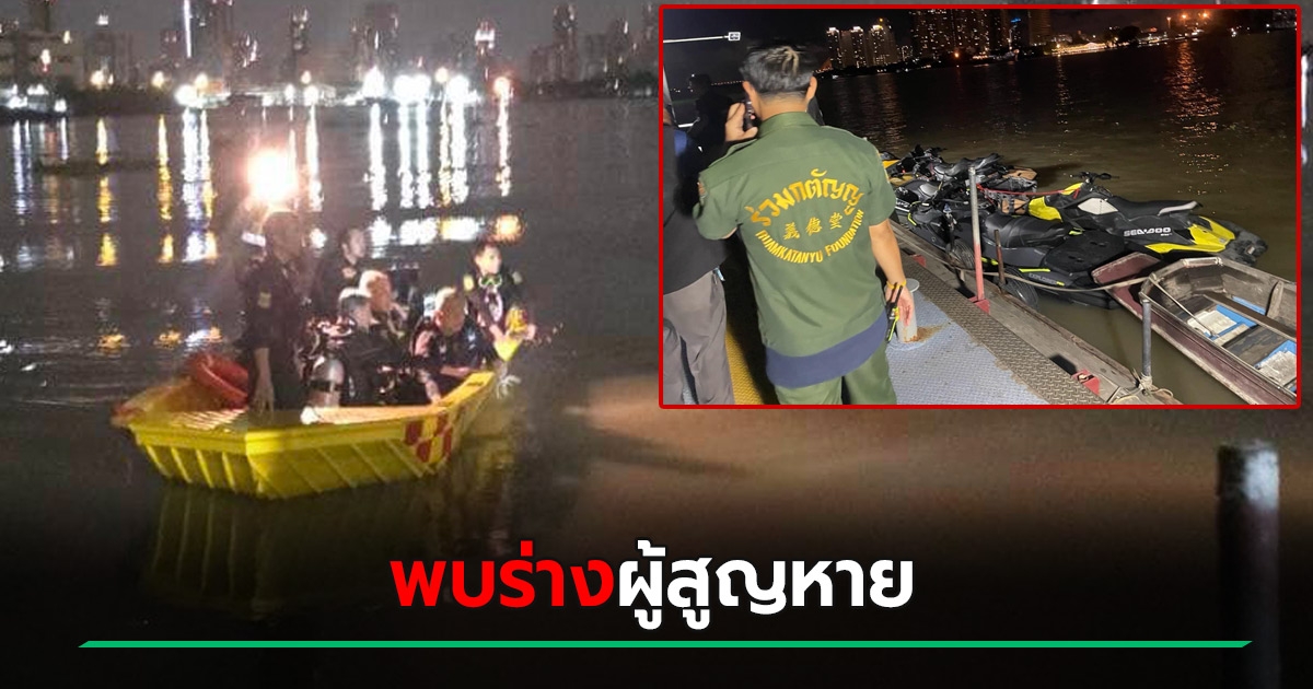 นักแสดงซีรีส์ ขี่เจ็ตสกีชนเรือหางยาว จมหาย 2 กลางเจ้าพระยา งมหา 6 ชม. พบร่าง