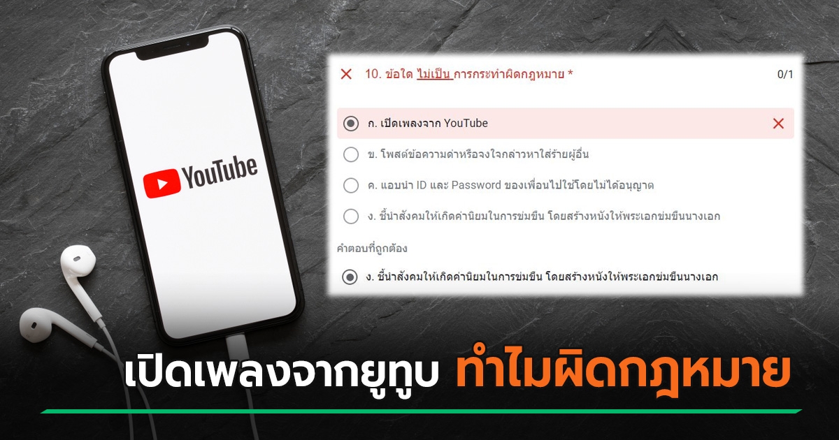 ไวรัลข้อสอบ เฉลยเปิดเพลงจากยูทูบเป็นสิ่งที่ผิดกฎหมาย งงล่ะสิ ทำไมถึงเป็นแบบนั้น