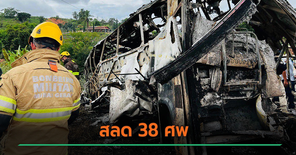รถบัสชนรถบรรทุก ไฟลุกไหม้สยอง คร่ากว่า 38 ศพ พบยางระเบิด-เสียหลัก