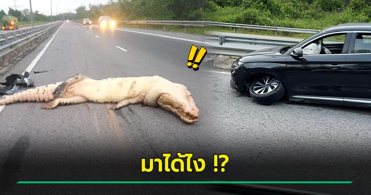 เปิดภาพอึ้ง จระเข้ยักษ์ ถูกรถชนกลางถนน ตัวใหญ่เบิ้มขวาง 1 เลน ช็อกมาได้ไง