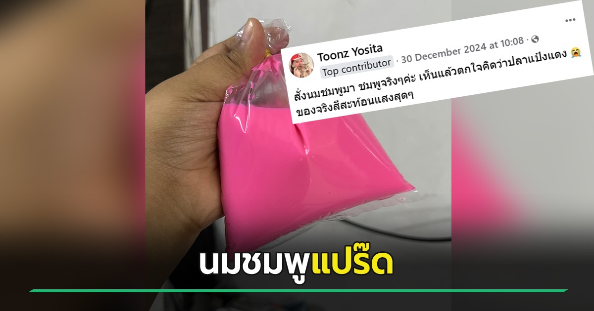 สั่งนมชมพูมาดื่ม เห็นแล้วได้แต่สงสัย จะชมพูไปไหน คาดทำยังไงถึงสีแปร๊ดแบบนี้