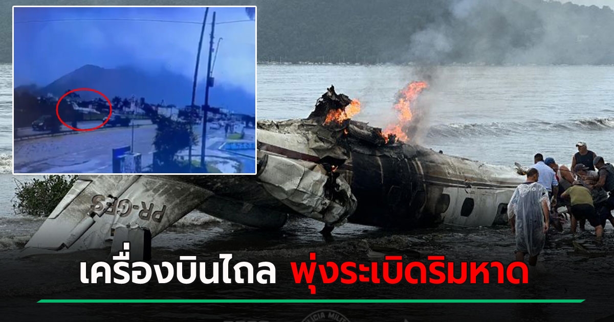 ช็อก ! เครื่องบินเล็กบราซิลไถลออกรันเวย์ พุ่งระเบิดริมหาด นักบินสังเวยชีพสลด
