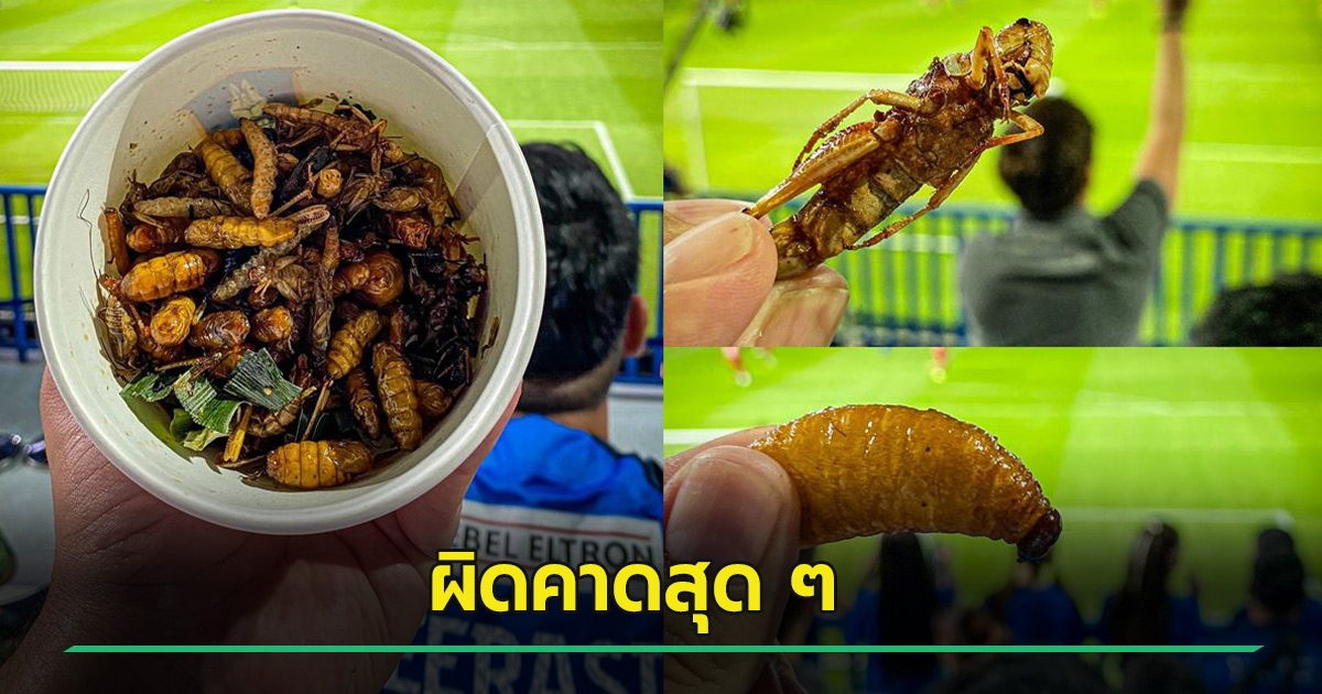 ฮือฮา ฝรั่งแชร์ภาพกินแมลงทอดที่สนามบอลไทย พีคคนแห่ยืนยัน เข้าท่ากว่าที่อังกฤษเยอะ