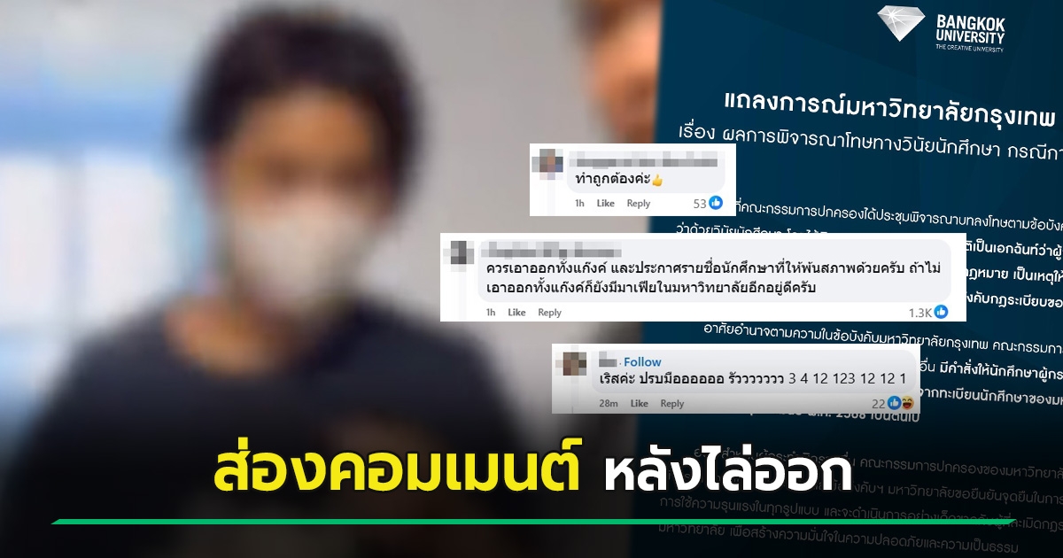 ส่องคอมเมนต์ ม.กรุงเทพ แถลงไล่มือสาดน้ำร้อนออกจากมหาวิทยาลัย