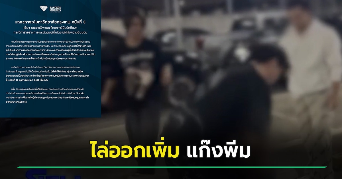ม.กรุงเทพ แถลงไล่ออก มือกล้อนผม-ทำร้ายในที่จอดรถ พบตอนนี้จับเพิ่มอีก 5