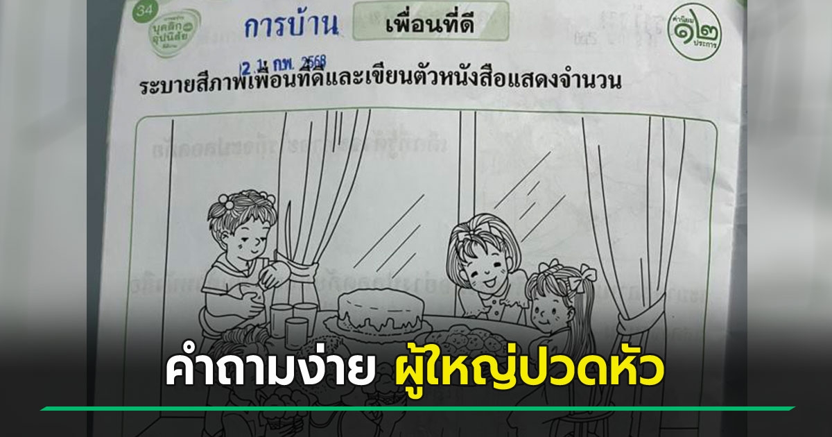 การบ้านลูก ให้ระบายสีเพื่อนที่ดี พอดูภาพแล้วเลือกไม่ถูกเลย คำถามง่าย ๆ คำตอบยากมาก