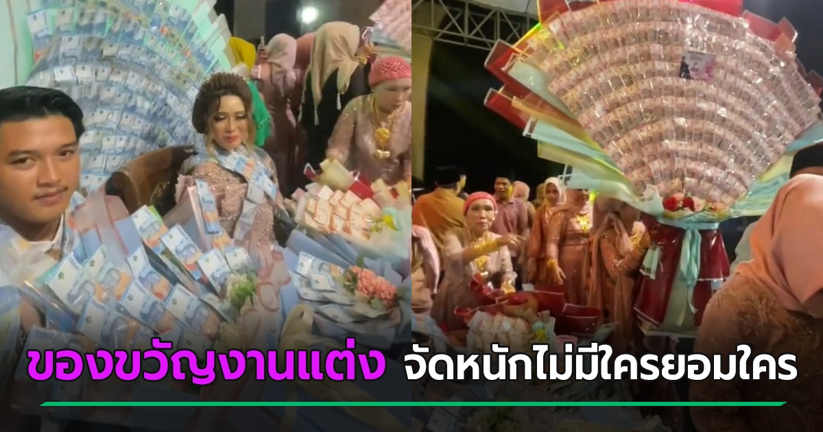 ฮือฮางานแต่งงาน บ่าวสาวเงินท่วม แขกจัดหนักให้ของขวัญอลังการ ช่อเงินสดชุดใหญ่