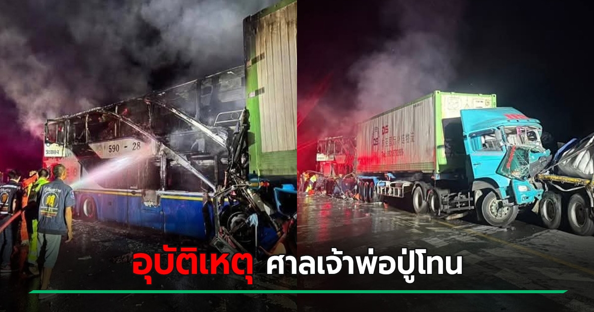 รถโดยสารชนกันไฟลุกที่ศาลเจ้าพ่อปู่โทน เจ็บ 40 ดับ 7 - ใกล้ ๆ จุดนี้เคยเกิดเหตุมาไม่นาน