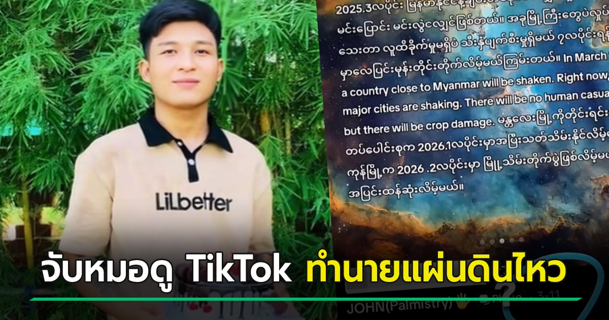 จับหมอดู TikTok ทำนายจะเกิดแผ่นดินไหวเมียนมาอีก จนกลายเป็นไวรัลดัง ทำคนแตกตื่น