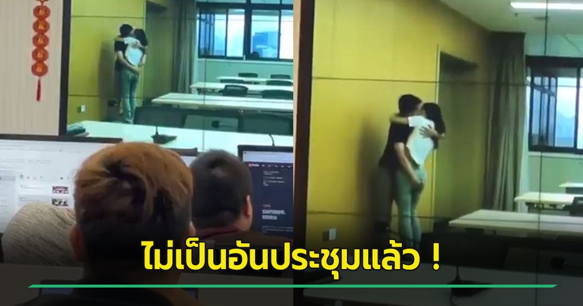 คู่รักเห็นห้องประชุมว่าง แอบเข้ามาเลิฟซีนดูดดื่ม ซีดไม่รู้มีประชุมออนไลน์ เจอพักงาน !