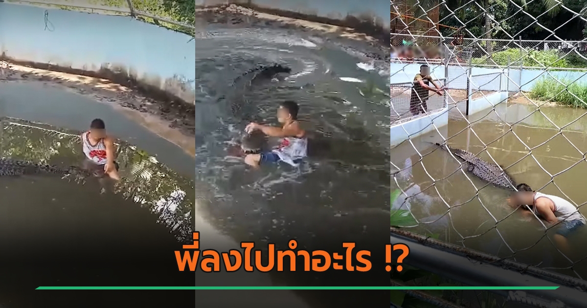 ชายโดดลงกรงจระเข้ นั่งชิลนึกว่าของปลอม ช็อกถูกงาบต่อหน้าฝูงชน คนกรี๊ดลั่น !