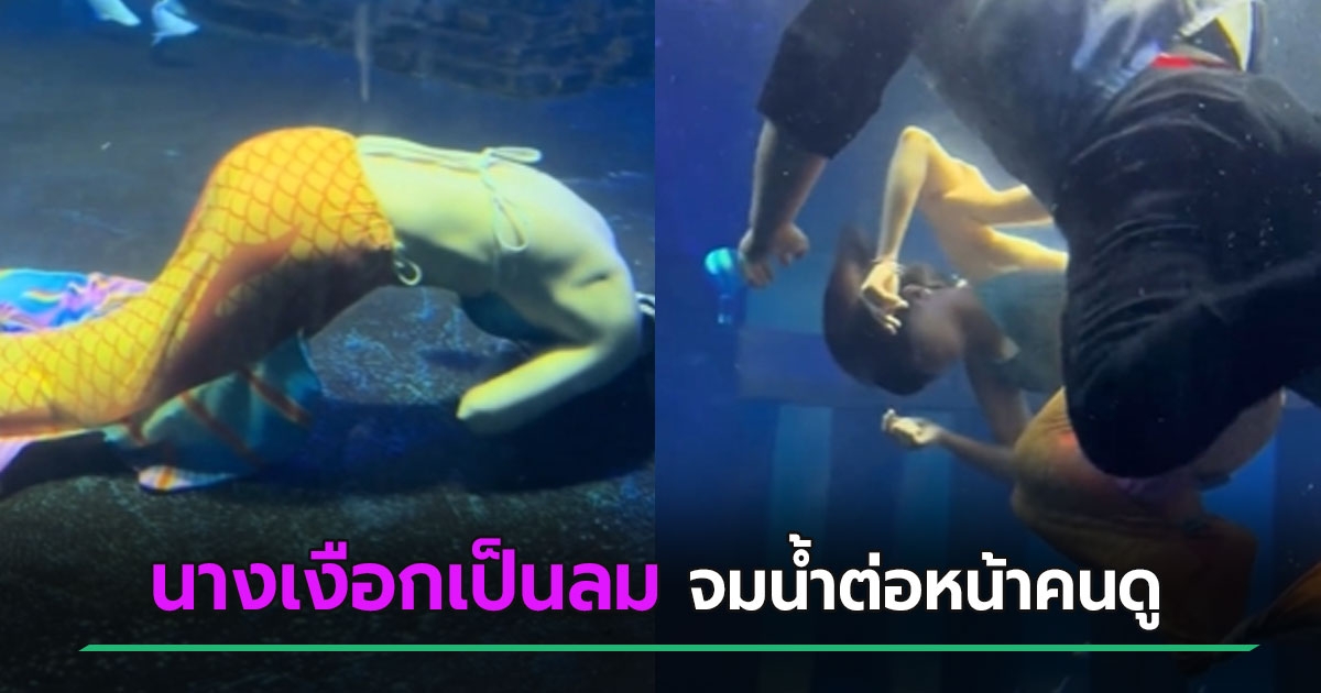 นาทีช็อก นางเงือกเป็นลมระหว่างโชว์ จมน้ำหวิดดับต่อหน้าคนดู ลุ้นช่วยบีบหัวใจ