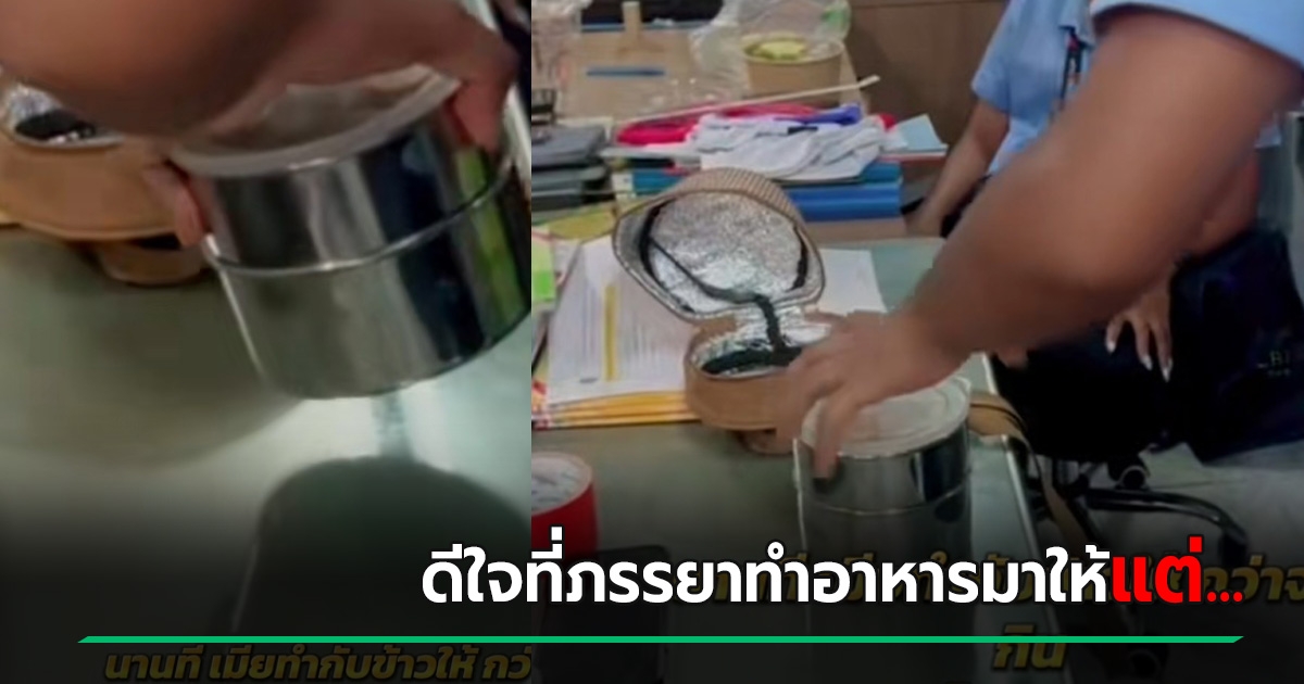 สามีดีใจ ภรรยาลุกขึ้นมาทำกับข้าวให้ไปกินที่ทำงาน พอถึงเวลาเปิดปิ่นโตเท่านั้นแหละ