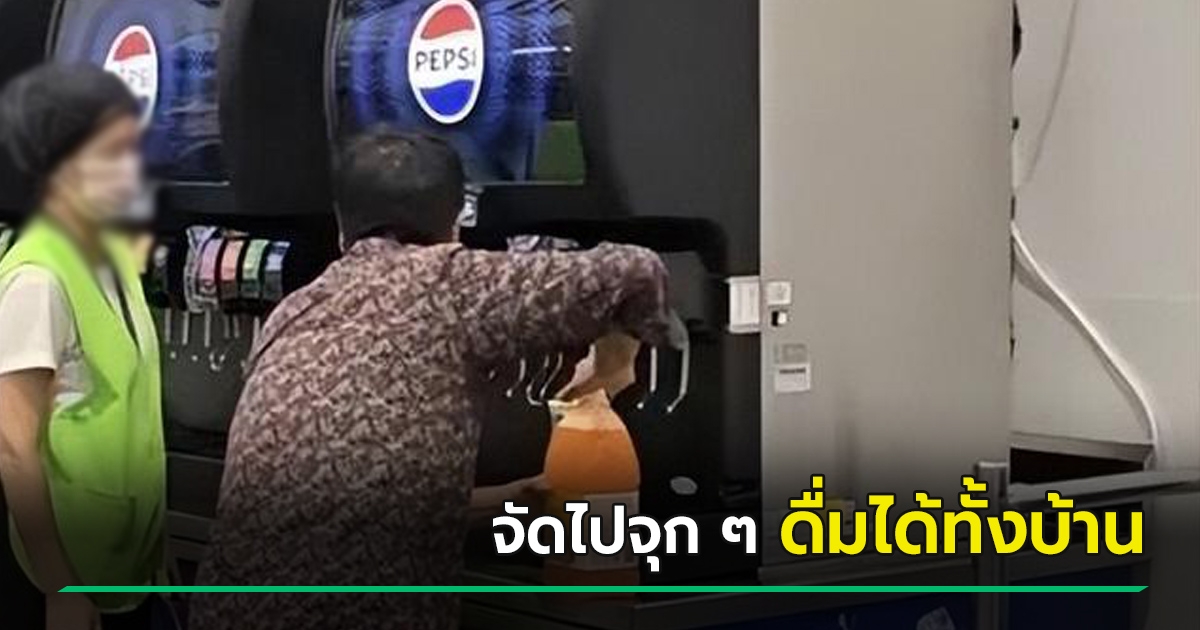 มนุษย์ป้า หอบแกลลอนมากดน้ำรีฟิล ซัดไปจุก ๆ ไม่แคร์ พนง. ห้าม หลังรู้เติมฟรีไม่อั้น