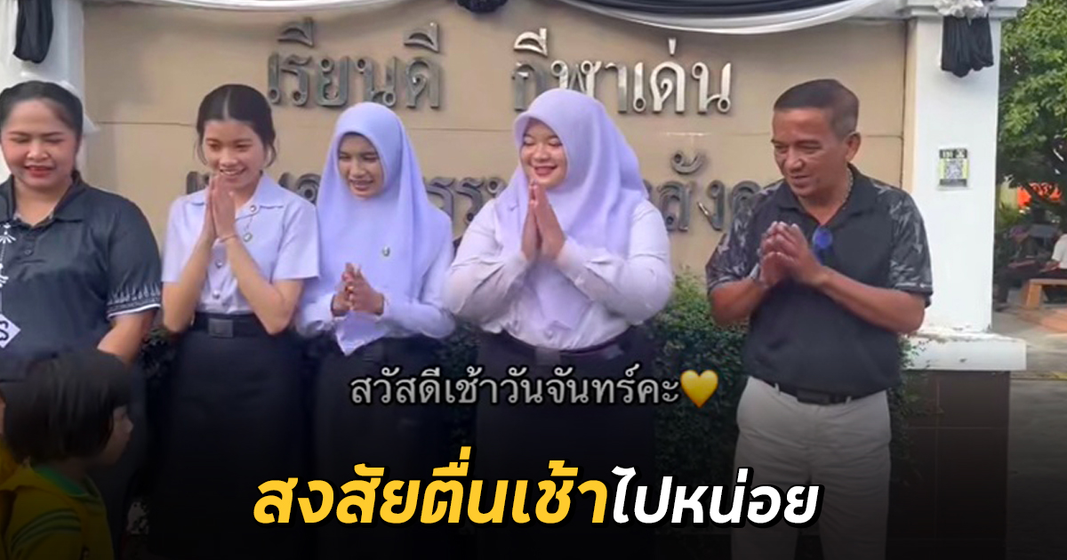 เมื่อครูออกมาต้อนรับนักเรียน มีน้องคนหนึ่ง ไปเผลอยืนไหว้กับครูเนียน ๆ
