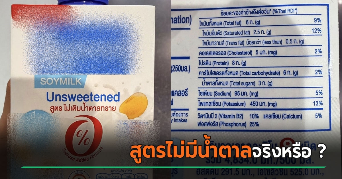 ไขปริศนา นมถั่วเหลืองเจ้าดัง ไม่เติมน้ำตาลทราย แต่ทำไมในส่วนประกอบยังมีน้ำตาล