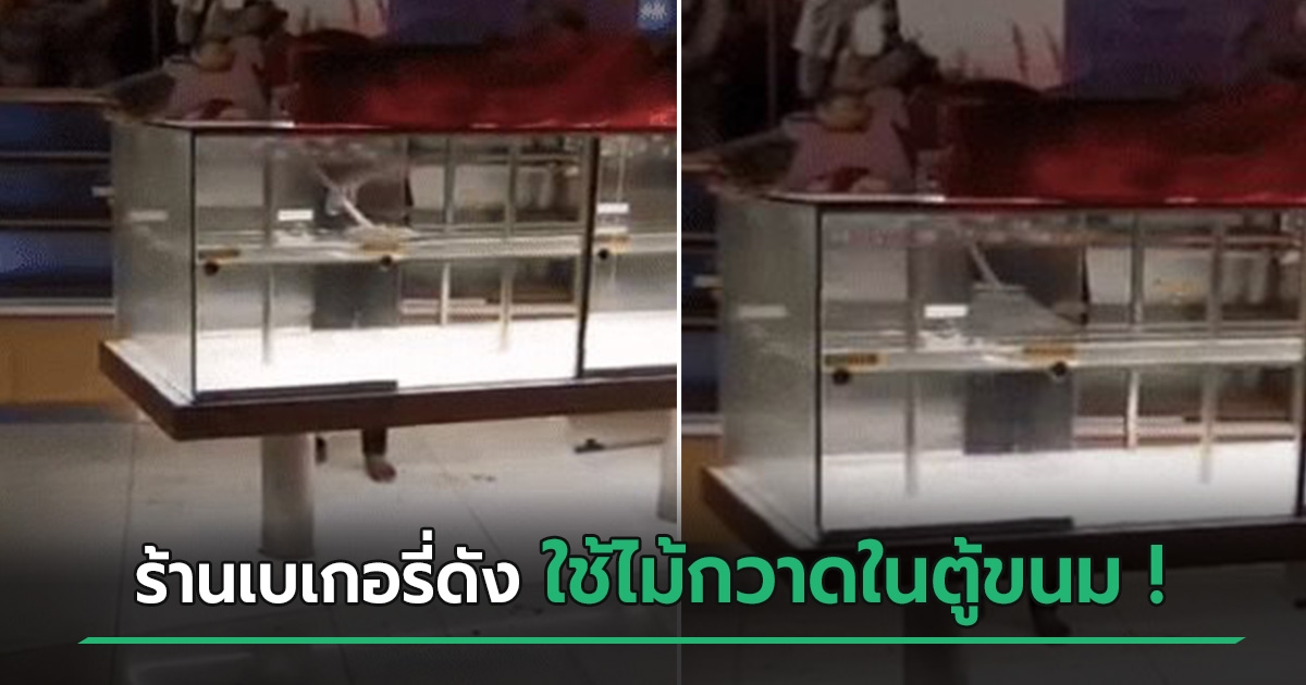 ดราม่า ! พนักงานร้านเบเกอรี่ดัง ใช้ไม้กวาดในตู้ขายขนมให้ลูกค้า ทางร้านชี้แจงแล้ว