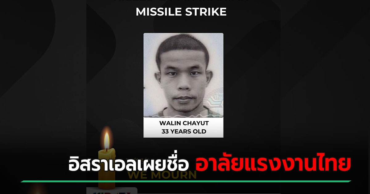 อิสราเอลเผยชื่อแรงงานไทยเสียชีวิต ส่งข้อความแสดงความอาลัย หลังอิหร่านโจมตีหนัก