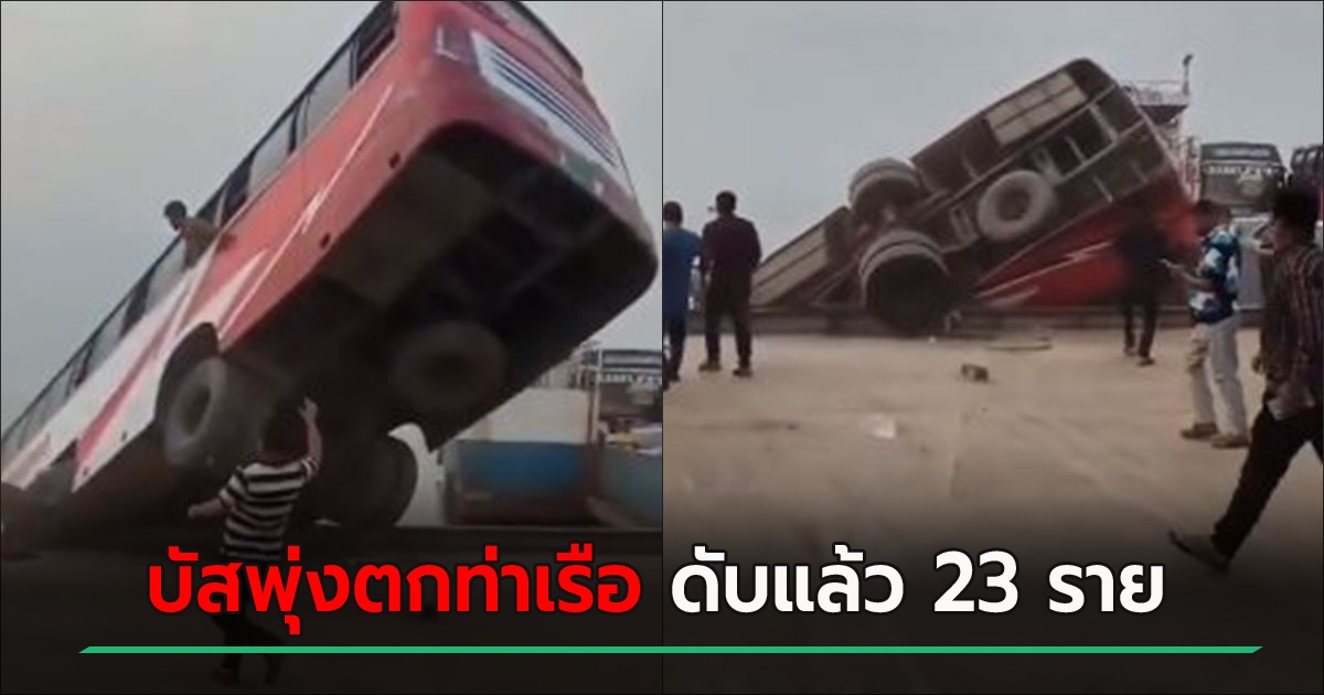 นาทีช็อก ! รถโดยสารบังกลาเทศพุ่งตกท่าเรือ พลิกคว่ำดิ่งแม่น้ำ ดับแล้ว 23 ราย