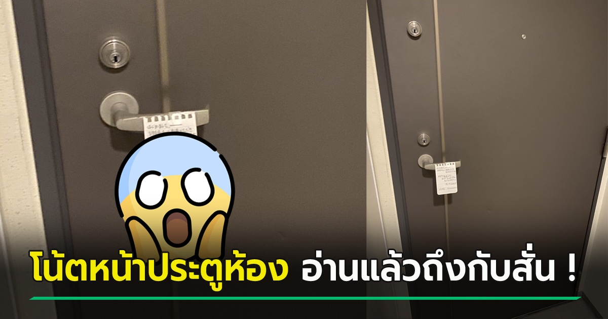 สาวเจอโน้ตพนักงานส่งอาหาร แปะหน้าประตูห้อง อ่านใกล้ ๆ ถึงกับสั่น ชาวเน็ตเสียงแตก