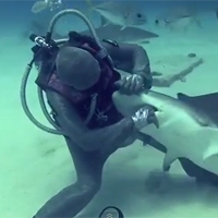 ใจกล้า ! นักดำน้ำสาวล้วงคอฉลาม ช่วยดึงตะขอเบ็ดออกมา