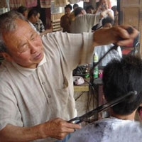 ช่างตัดผมจีนตัดผมด้วยวิธีดั้งเดิม ใช้เหล็กร้อนเผาผม
