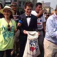 อ๊อฟ ปองศักดิ์ โผล่ร่วมม็อบ กปปส. ถือถุงรับบริจาคเงินช่วยชาวนา