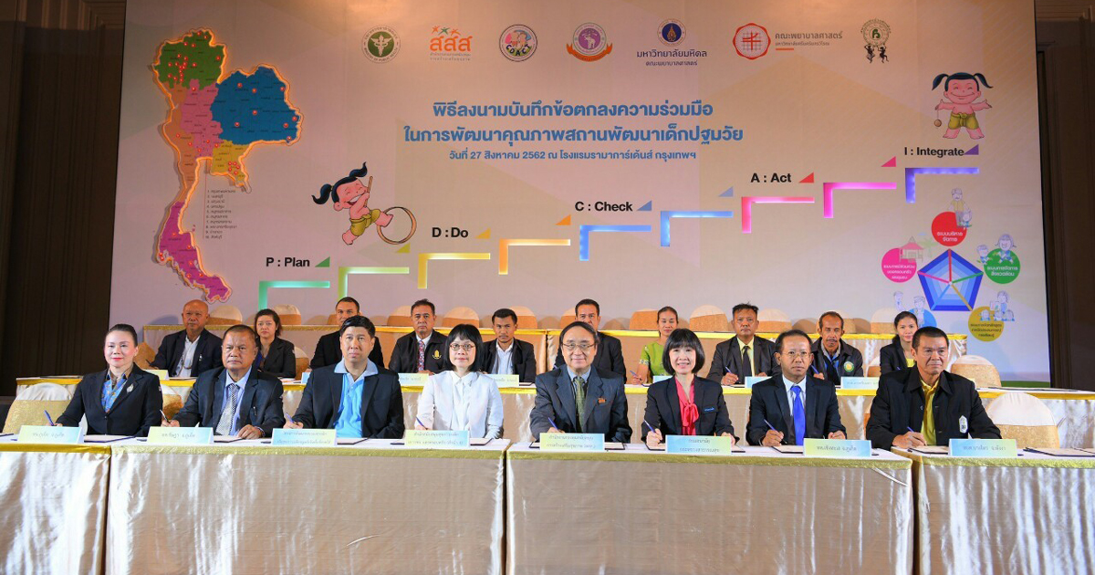สสส. จับมือ กรมอนามัย คณะพยาบาลฯ อปท. พัฒนาคุณภาพศูนย์เด็กเล็กแบบก้าวกระโดด นำร่อง 273 แห่ง พบเด็กไทยยังเหลื่อมล้ำ เข้าไม่ถึงโอกาสมีคุณภาพชีวิตที่ดี เมื่อวันที่ 27 สิงหาคม 2562 ที่โรงแรมรามาการ์เด้น ในการลงนามความร่วมมือข้อตกลง (MOU) ความร่วมมือในการพัฒนาคุณภาพศูนย์พัฒนาเด็กเล็กแบบก้าวกระโดด ระหว่าง กระทรวงสาธารณสุข โดยกรมอนามัย สำนักงานกองทุนสนับสนุนการสร้างเสริมสุขภาพ คณะพยาบาลศาสตร์ มหาวิทยาลัยเชียงใหม่ คณะพยาบาลศาสตร์ มหาวิทยาลัยศรีนครินทรวิโรฒ คณะพยาบาลศาสตร์ มหาวิทยาลัยมหิดล สมาคมดับบ้านดับเมืองและองค์กรปกครองส่วนท้องถิ่น