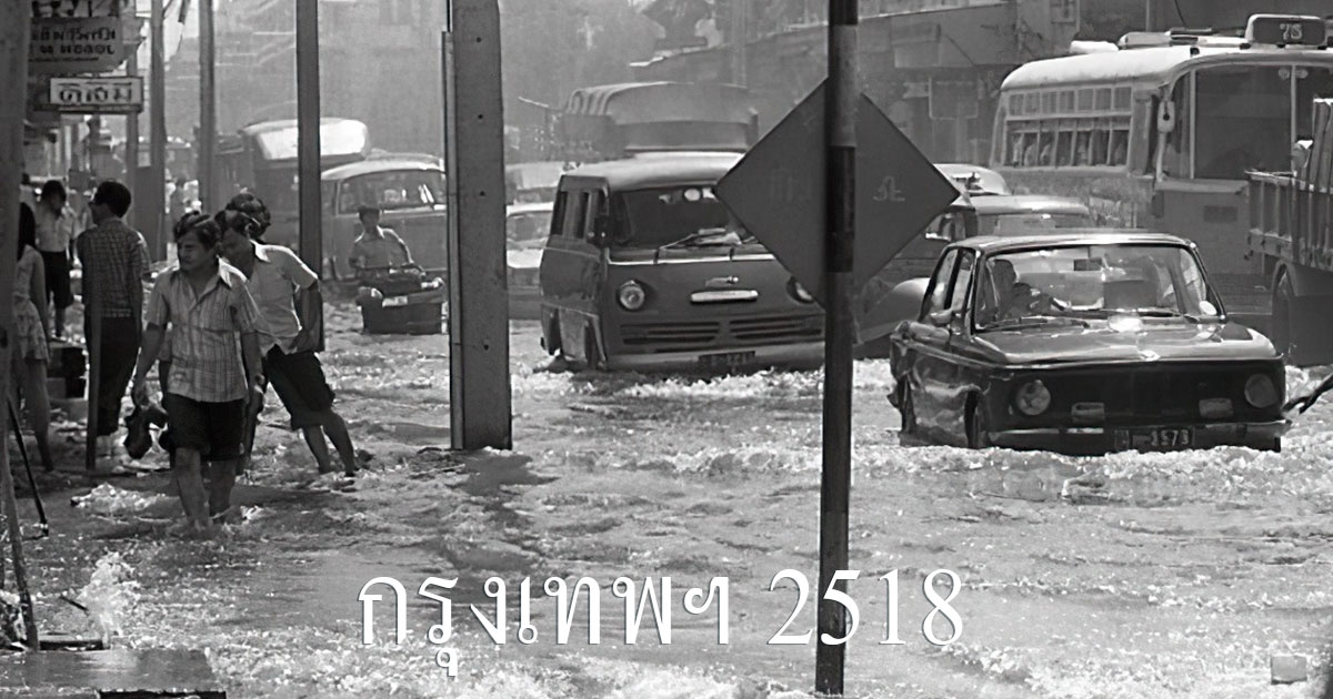 ภาพน้ำท่วมกรุงเทพมหานคร เมืองหลวงประเทศไทย ในช่วงฤดูฝน เมื่อปี พ.ศ. 2518 หรือ 45 ปีที่แล้ว โดยภาพเหตุการณ์น้ำท่วมดังกล่าวเป็นยุคของนายธรรมนูญ เทียนเงิน จากพรรคประชาธิปัตย์ เป็นผู้ว่าราชการกรุงเทพมหานคร และถือเป็นครั้งแรกที่คนเมืองหลวงได้ผู้ว่า ฯ มาจากการเลือกตั้ง ซึ่งถูกถ่ายภาพโดย Norman Peagam ผู้สื่อข่าวและช่างภาพ The New York Timesภาพจากเฟซบุ๊ก 50+