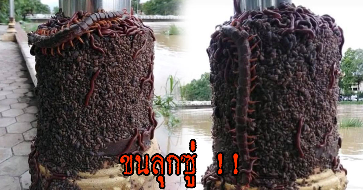 เฟซบุ๊กเพจ ที่ไหนก็ได้บนโลกนี้ ได้แชร์ภาพนาทีฝูงสัตว์เลื้อยคลานที่มีทั้งกิ้งกือและตะขาบ พร้อมแมลงหลายสายพันธุ์ พร้อมใจกันหนีน้ำท่วมโดยไม่ได้นัดหมาย บนเสาไฟฟ้า จนกลายเป็นภาพสยดสยองที่ชาวเน็ตพากันขนลุกทั้งโซเชียลขอบคุณภาพจากเฟซบุ๊กเพจ ที่ไหนก็ได้บนโลกนี้