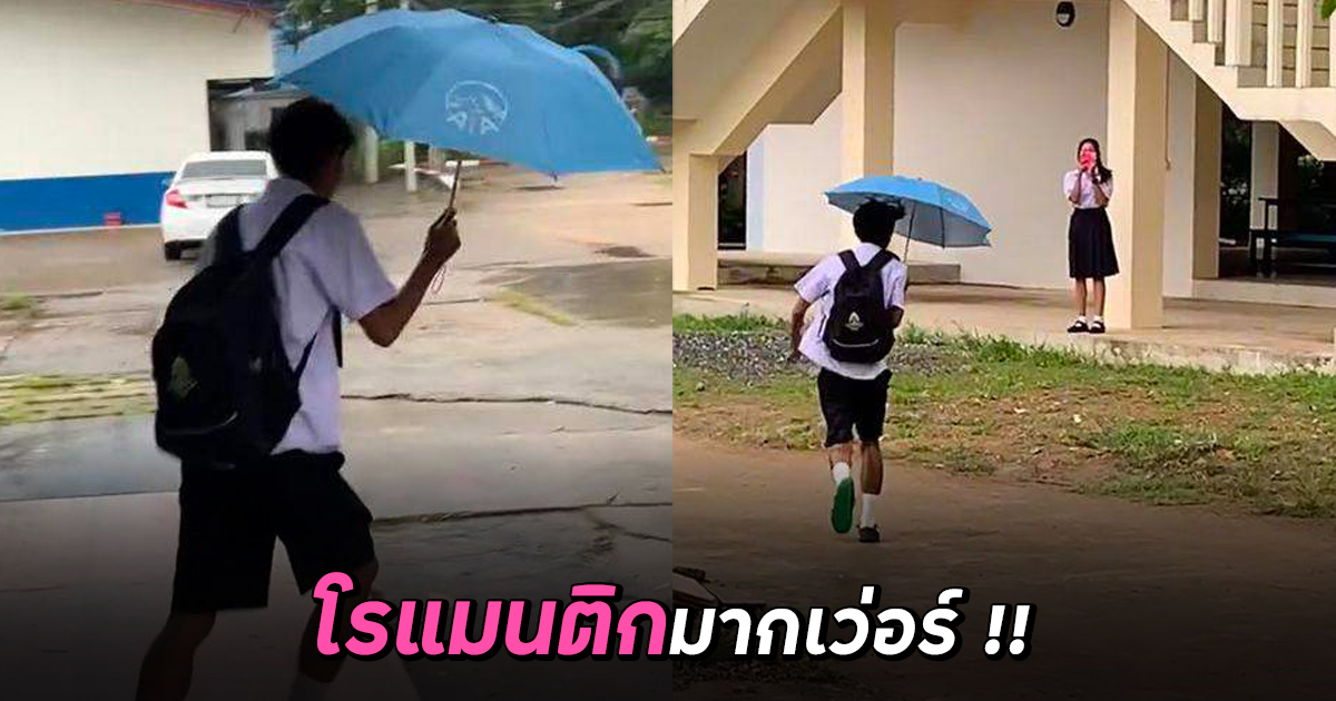 โรแมนติกเว่อร์ นักเรียนหนุ่ม กางร่มไปรับสาว แต่ทำไมขากลับแปลก ๆ