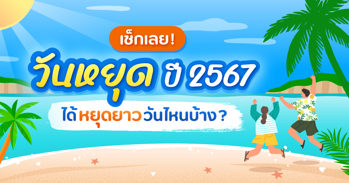 รวมวันหยุดปฏิทิน 2567 เผื่อใครมีแพลนเที่ยวหรือพักผ่อน ลองมาเช็กปฏิทินวันหยุดราชการ และวันหยุดยาวตลอดทั้งปี หาวันหยุดที่ใช่แล้วออกไปท่องโลกกัน วันหยุด 2567 มีวันไหนบ้าง ทั้งวันหยุดราชการและวันหยุดยาว เพื่อเตรียมตัวจัดแพลนวางแผนเที่ยววันหยุดยาว ไปทำบุญ หรือไปเยี่ยมญาติล่วงหน้า มาส่องปฏิทินวันหยุด ปี 2567 ที่เรารวบรวมมาให้กันได้เลย โดยมีทั้งวันหยุดประจำปี วันหยุดราชการ รวมไปถึงวันหยุดธนาคาร ปี 2567เริ่มต้นวางแผนล่วงหน้ากับปฏิทินวันหยุดยาว 2568 อัปเดตวันหยุดราชการและวันหยุดธนาคารครบถ้วน ตั้งแต่ปลายธันวาคม 2567 เตรียมตัวให้พร้อมสำหรับทริปท่องเที่ยว ทำบุญ หรือพักผ่อนกับครอบครัว วันจันทร์ที่ 1 มกราคม 2567 วันขึ้นปีใหม่ วันเสาร์ที่ 24 กุมภาพันธ์ 2567 วันมาฆบูชา วันจันทร์ที่ 26 กุมภาพันธ์ 2567 วันหยุดชดเชยวันมาฆบูชา วันเสาร์ที่ 6 เมษายน 2567 วันจักรี วันจันทร์ที่ 8 เมษายน 2567 วันหยุดชดเชยวันจักรี วันเสาร์ที่ 13 เมษายน 2567 วันสงกรานต์ วันอาทิตย์ที่ 14 เมษายน 2567 วันสงกรานต์ วันจันทร์ที่ 15 เมษายน 2567 วันสงกรานต์ วันอังคารที่ 16 เมษายน 2567 วันหยุดชดเชยวันสงกรานต์ วันพุธที่ 1 พฤษภาคม 2567 วันแรงงานแห่งชาติ วันเสาร์ที่ 4 พฤษภาคม 2567 วันฉัตรมงคล วันจันทร์ที่ 6 พฤษภาคม 2567 วันหยุดชดเชยวันฉัตรมงคล วันพุธที่ 22 พฤษภาคม 2567 วันวิสาขบูชา วันจันทร์ที่ 3 มิถุนายน 2567 วันเฉลิมพระชนมพรรษา สมเด็จพระนางเจ้าสุทิดา พัชรสุธาพิมลลักษณ พระบรมราชินี วันเสาร์ที่ 20 กรกฎาคม 2567 วันอาสาฬหบูชา วันอาทิตย์ที่ 21 กรกฎาคม 2567 วันเข้าพรรษา วันจันทร์ที่ 22 กรกฎาคม 2567 วันหยุดชดเชยวันเข้าพรรษา วันอาทิตย์ที่ 28 กรกฎาคม 2567 วันเฉลิมพระชนมพรรษา พระบาทสมเด็จพระปรเมนทรรามาธิบดีศรีสินทรมหาวชิราลงกรณ พระวชิรเกล้าเจ้าอยู่หัว วันจันทร์ที่ 29 กรกฎาคม 2567 วันหยุดชดเชยวันเฉลิมพระชนมพรรษา พระบาทสมเด็จพระปรเมนทรรามาธิบดีศรีสินทรมหาวชิราลงกรณ พระวชิรเกล้าเจ้าอยู่หัว วันจันทร์ที่ 12 สิงหาคม 2567 วันเฉลิมพระชนมพรรษา สมเด็จพระนางเจ้าสิริกิติ์ พระบรมราชินีนาถ พระบรมราชชนนีพันปีหลวง และวันแม่แห่งชาติ วันอาทิตย์ที่ 13 ตุลาคม 2567 วันนวมินทรมหาราช วันจันทร์ที่ 14 ตุลาคม 2567 วันหยุดชดเชยวันนวมินทรมหาราช วันพุธที่ 23 ตุลาคม 2567 วันปิยมหาราช วันพฤหัสบดีที่ 5 ธันวาคม 2567 วันคล้ายวันพระบรมราชสมภพ พระบาทสมเด็จพระบรมชนกาธิเบศร มหาภูมิพลอดุลยเดชมหาราช บรมนาถบพิตร วันชาติ และวันพ่อแห่งชาติ วันอังคารที่ 10 ธันวาคม 2567 วันรัฐธรรมนูญ วันจันทร์ที่ 30 ธันวาคม 2567 วันหยุดพิเศษ (วันหยุดราชการ) วันอังคารที่ 31 ธันวาคม 2567 วันสิ้นปี วันศุกร์ที่ 29 ธันวาคม 2566 วันหยุดช