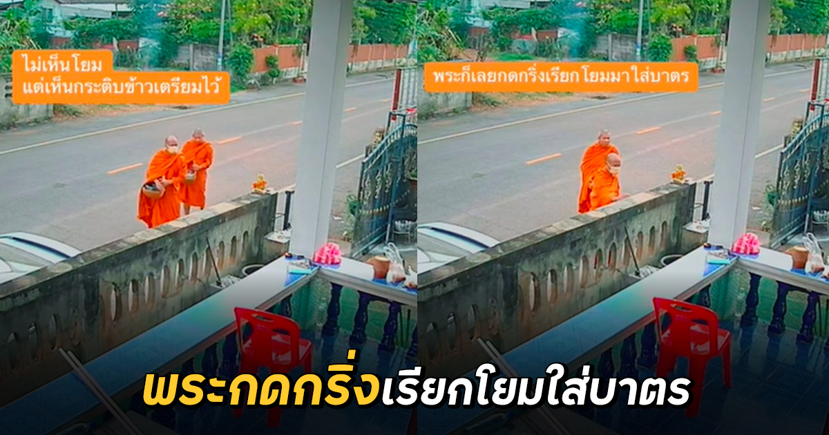 พระเห็นโยมเตรียมของใส่บาตร แต่ตัวไม่อยู่ เลยกดกริ่งเรียกให้ออกมา