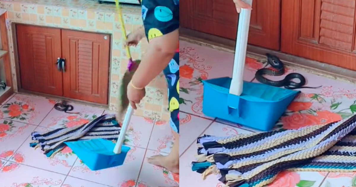 วิธีจับงูเห่าแบบแม่บ้าน แค่มีไม้กวาดก็จัดการได้แล้ว
