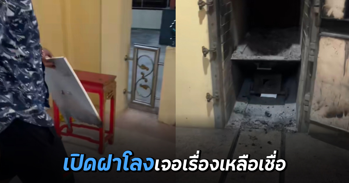 เอาฝาโลงออกจากเมรุช่วงเช้า ไหม้เกือบหมด เหลือจุดเดียวยังเหมือนเดิม