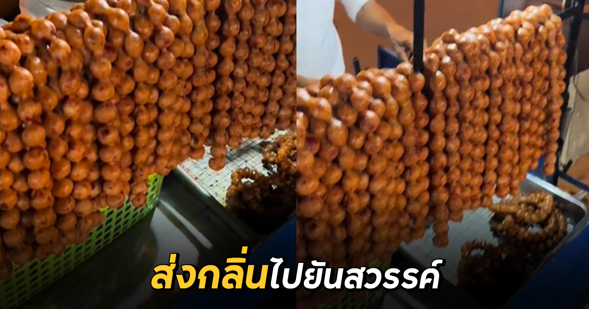 ลูกค้าซื้อไส้กรอกอีสาน มองไปที่ปล่องดูดควัน ทำถึงไปอีกพ่อค้า