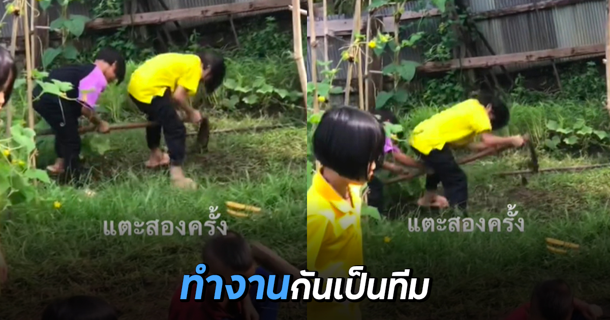 ครูให้นักเรียนทำสวน มีอยู่คู่หนึ่ง ทำงานเป็นทีมไปอีก