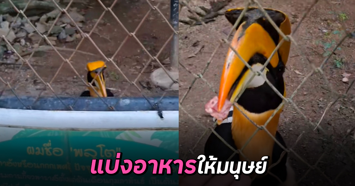 นกเงือกเห็นนักท่องเที่ยวเดินผ่าน ถึงกับเอาของกินมาแบ่งให้