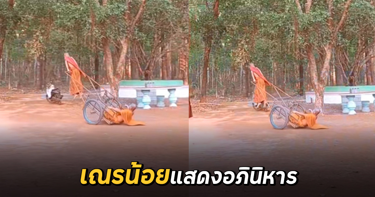 เณรบวชภาคฤดูร้อน แสดงอภินิหารในวัด เข็นรถแบบเหินฟ้า