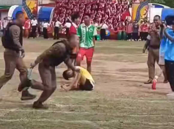 ตำรวจลงแข่งวิ่งผลัดกับนักเรียน เพิ่งเปลี่ยนไม้แป๊บเดียว อายคนทั้งสนาม