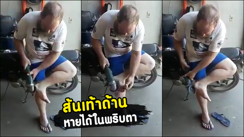 ถ้าใครไม่มีปัญหาเรื่องส้นเท้าแตก ส้นเท้าด้าน ตาปลา จะหมดไป หลังผู้ใช้เฟซบุ๊กชื่อ Ittirutn Sirichot โพสต์คลิปหนุ่มรายหนึ่งใช้วิธีการกำจัดหนังเท้าด้านด้วย เครื่องเจียรไฟฟ้า ขัดหนังเท้าที่ด้าน ๆ ออก บอกลาปัญหาส้นเท้าด้าน ทันใจ ในพริบตา