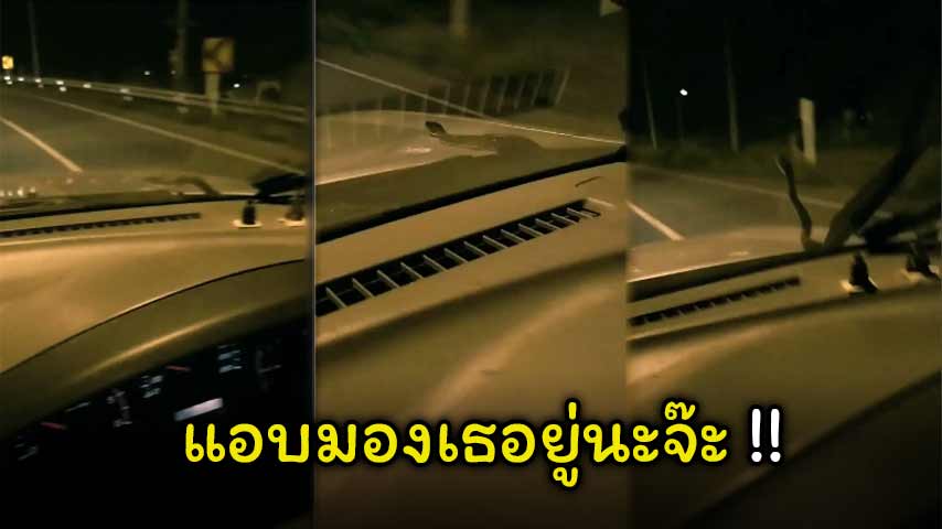 เป็นคลิปที่ถูกแชร์ไปทั่วโลกออนไลน์ หลังเฟซบุ๊กเพจ อยากดังเดี๋ยวจัดให้ Travel โพสต์คลิปที่ถูกถ่ายไว้โดยสาวรายหนึ่ง เผยให้เห็นงูโผล่มาทักทายกันหน้ากระจกรถขณะที่รถยังวิ่งอยู่ ทำเอาเจ้าตัวถึงกับร้องเสียงหลง