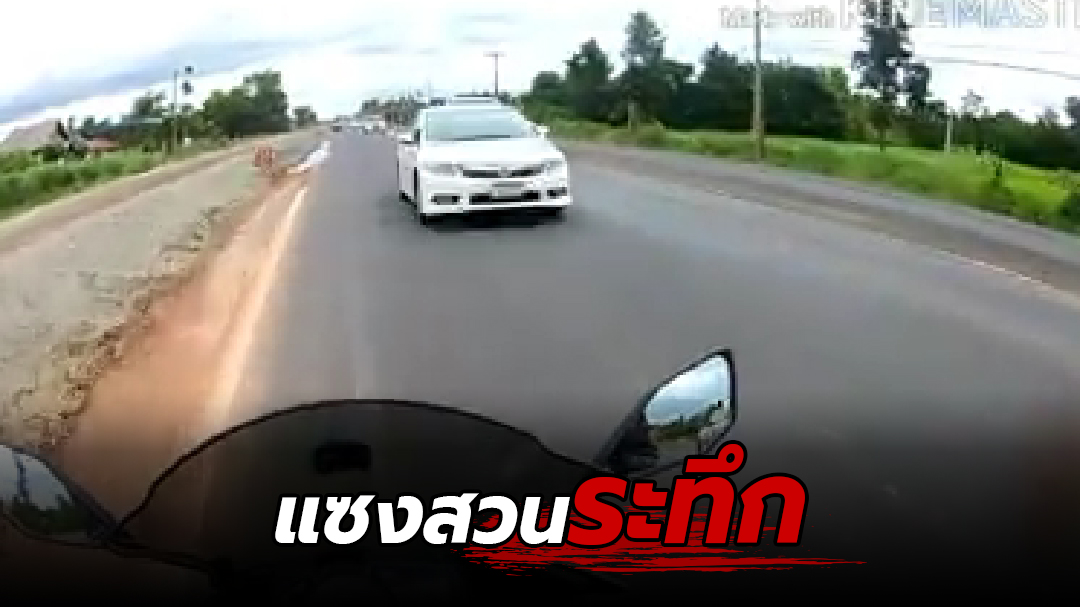 เปิดคลิประทึก เหตุการณ์บนถนนสายหนึ่งในประเทศไทย มอเตอร์ไซค์ขี่มาตามถนนปกติ เจอรถเก๋งแซงสวนเลนหลายคันสุดอันตราย ไม่สนจะมีรถสวนหรือไม่ คนขี่มอเตอร์ไซค์บีบแตรลั่น ใจหายวาบหวิดชนไปนิดเดียว
