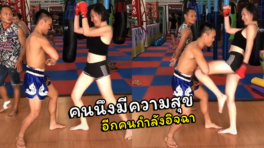 ผู้ใช้แอปฯ TikTok ชื่อ @saenchaimuaythaigym ได้โพสต์คลิปค่ายมวยแห่งหนึ่งที่เปิดสอนมวยไทย มีสาวสวยต่างชาติมาเรียนมวยในค่าย มีเทรนเนอร์คอยดูแลอย่างใกล้ชิด จึงเกิดเหตุการณ์แบบนี้เกิดขึ้น "คนนึงกำลังมีความสุข อีกคนกำลังอิจฉา"