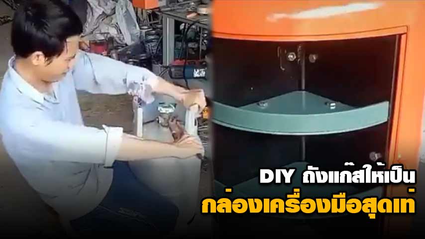 เปิดไอเดียสุดเจ๋ง !! วิธีเปลี่ยนถังแก๊สเหลือใช้ เป็นกล่องใส่เครื่องมือคูล ๆ