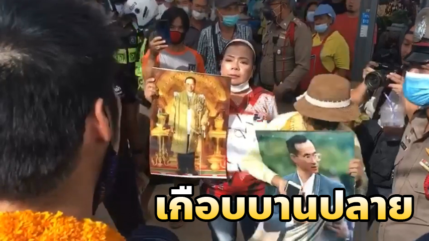 โดยระหว่างที่ นายธนาธร หาเสียงอยู่นั้นได้มีประชาชน พร้อมแม่ค้าในตลาดนำพระบรมฉายาลักษณ์พระบาทสมเด็จพระเจ้าอยู่หัวรัชกาลที่ 9 มาด้วย บุกฝ่ากลางวงปรี่เข้าหาตัวนายธนาธร พร้อมบอกให้หยุดจาบจ้วงสถาบันฯ และมีปากเสียงกันระหว่างฝ่ายที่สนับสนุนนายธนาธร กับฝ่ายที่ถือพระบรมฉายาลักษณ์พระบาทสมเด็จพระเจ้าอยู่หัวรัชกาลที่ 9