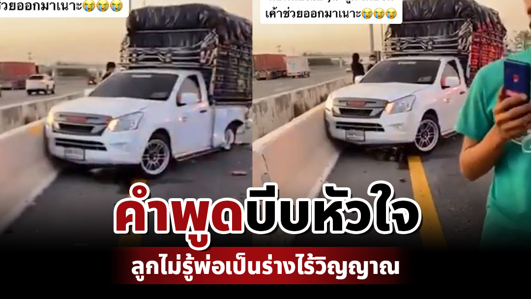 เป็นอีกหนึ่งอุบัติเหตุสุดสลด กระบะยางแตก จอดเลนขวา รถคันหลังไม่ทันระวังพุ่งชนอย่างจัง โดยในรถมีเด็ก 1 ราย และคนขับซึ่งเป็นพ่อของเด็ก ซึ่งระหว่างที่เจ้าหน้าที่กู้ภัยมาถึงจุดเกิดเหตุ พบคนขับรถเสียชีวิต แต่เด็กที่มาด้วยรอด ทำให้เจ้าหน้าที่กู้ภัยต้องพูดให้กำลังใจเด็กด้วยประโยคสุดบีบหัวใจ